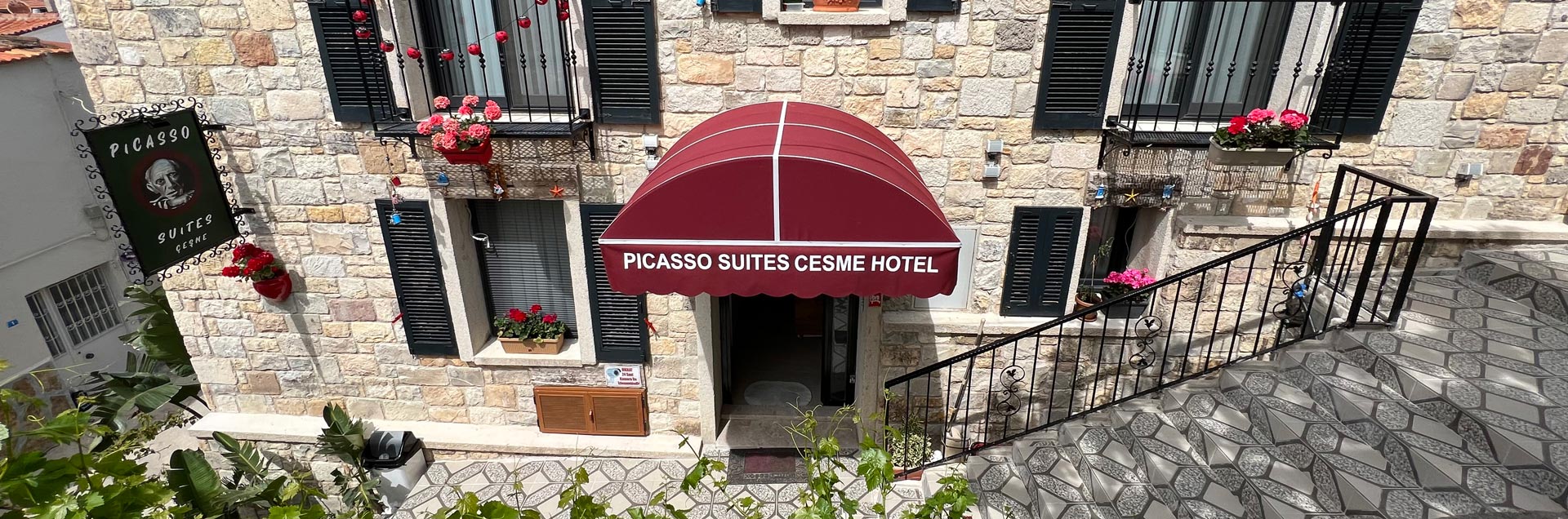 Picasso Suites Çeşme; Siz değerli misafirlerine sunduğu 6 odalı binamızda, 7/24 kamera sistemi, giriş kapısı dahil elektronik kartlı kapı sistemiyle konuk olduğunuz sürece kendinizi güvende hissedecek, sıcak bir atmosferde konaklayacak ve Çeşme’nin güzelliklerinden en iyi şekilde faydalanacaksınız. Aracınıza ihtiyaç duymayacağınız bir tatil keyfini, çok merkezi bir konumda olmamızın verdiği avantaj ile yaşayacaksınız. Çeşme merkezde olmamızın avantajı ile eğlence, yeme ve içme, deniz, güneş, yat limanı, mağazalar, Çeşme Kale’sine bir adım mesafede yer alacaksınız.