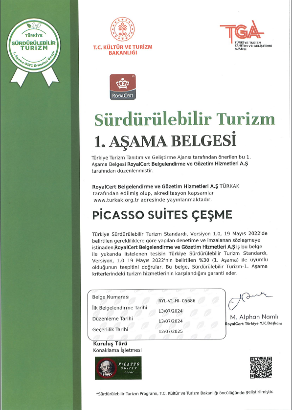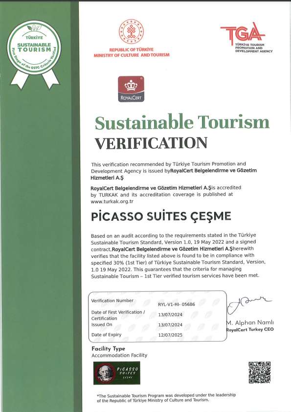 Doğa ve tarih turizminin merkezi Çeşme’de bulunan tesisimiz Picasso Suites Çeşme, Ülkemizin iç ve dış turizm pazarında en saygın düzeye gelebilmesi için çalışmalarını büyük bir özveri ile sürdürmektedir.
